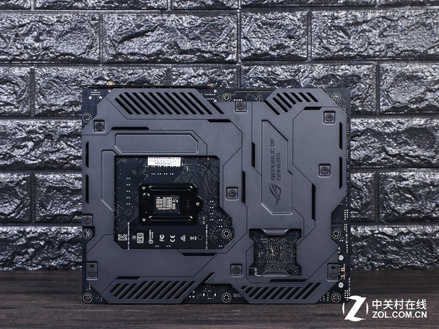 主板背后配置了一个金属装甲,保证主板整体稳固,提升强度,同时为主板背面的电子元件提供了保护。
