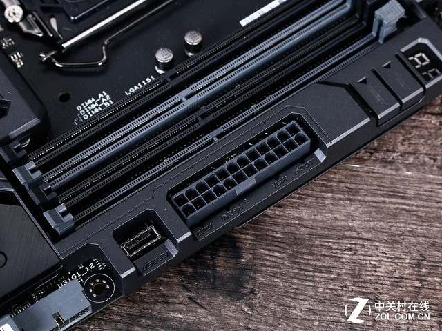 主板供电接口的附近安排了两个DIY快捷按钮和DEBUG指示,另一边则是前置USB3.1和3.0跳线接口,随意扩展前置接口。