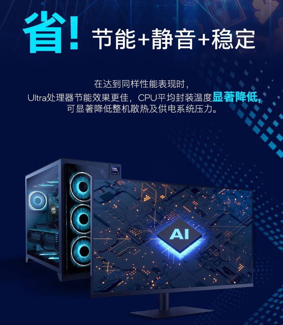 功耗和温度控制则是酷睿Ultra 7 265K的另一大优势。得益于E核能效优化和全新制程工艺,日常应用功耗下降35%,对于装机用户来说,这意味着可以搭配更小功率的电源和风冷散热器,实现“高性能+低噪音”的完美平衡。对比起竞品动辄90多度的表现来说,可以说非常优秀了。